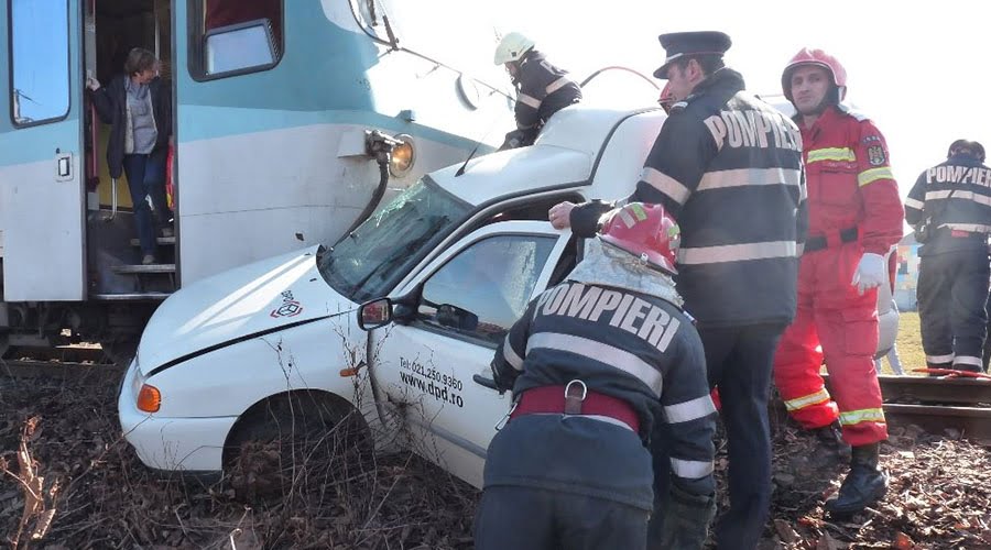 Cum în acel moment, pe şine circula un tren, acesta a izbit în plin maşina.