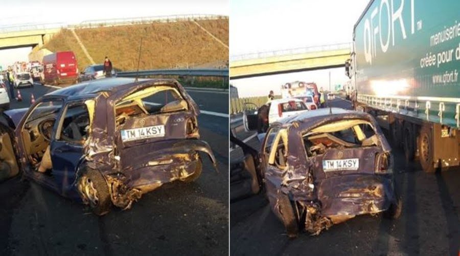 ”La km 492 pe sensul de mers Lugoj-Timișoara, un microbuz de transport marfă înmatriculat în Bulgaria condus de un cetățean bulgar, nu păstrează distanța regulamentară față de autoturismul morca VWPolo care se deplasa în față, pe aceeași direcție de mers pe banda 1, și îl lovește din spate, autoturismul Polo fiind proiectat în parapeții de pe zona marginală. În urma impacatului a rezultat decesul conducătorului auto din autoturismul VW Polo, și rănirea pasagerului din dreapta față, care a fost transport la Spitalul Județean Timișoara pentru acordarea de îngrijiri medicale. În urma efectuării cercetărilor la fata locului s-a stabilit faptul că accidentul s-a produs datorită nepăstrării distanței în mers față de auto din față, vinovat fiind șoferul microbuzului”, spune Valentin Burtă, comisar șef Poliția Autostrăzi.