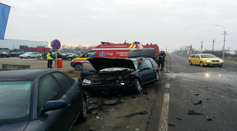 ”ISU Timiș a fost solicitat să intervină la un accident rutier între 3 autoturisme (dintre care, un autoturism parcat în afara părții carosabile), în Sânnicolau Mare. La locul intervenției s-au deplasat o autospecială de stingere cu apă și spumă, o autosanitară SMURD, un ofițer și 6 subofițeri din cadrul Stației de Pompieri Sânnicolau Mare. În accident au fost implicate 3 persoane, dintre care doar o persoană a necesitat îngrijiri medicale, dar a refuzat transportul la spital. Pompierii militari au asigurat măsurile PSI necesare”, spun cei de la ISU Banat.