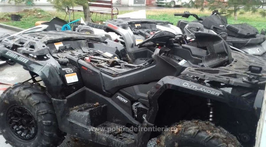 ”În data de 13.01.2018, în jurul orei 00.10, în Punctul de Trecere a Frontierei Cenad, s-a prezentat pentru efectuarea formalităţilor de frontieră, cetăţeanul român D. Cristian în vârstă de 20 ani, domiciliat pe raza judeţului Mehedinți, conducând o autocamioneta marca Fiat Ducato, înmatriculată în Franța. La controlul efectuat asupra autocamionetei care transporta mobilă, poliţiştii de frontieră timișeni au descoperit în remorca acesteia, în spatele unui panou (OSB) dismulat, 2 ATV noi, marca CAN-AM-BRP, pentru care conducătorul autovehicului nu a putut prezenta documente de proveniență a acestora”, transmit reprezentanții Poliției de Frontieră.