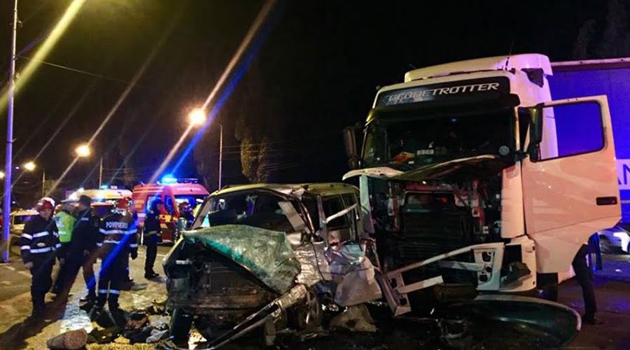 Un microbuz în care erau şase persoane a izbit violent tirul, iar bilanţul impactului este unul tragic.