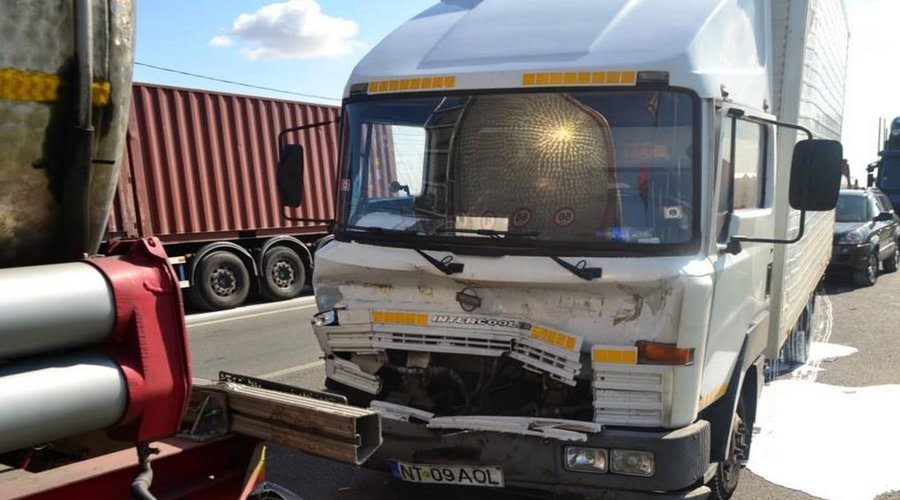 Accident în lanț în această dimineață! Trei tiruri au fost implicate.