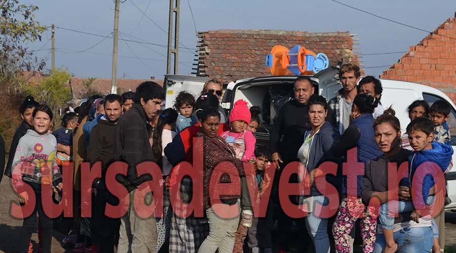 Spre exemplu, în această după-amiază, doi tineri împărţeau de zor “cadouri”, rromilor din localitate.