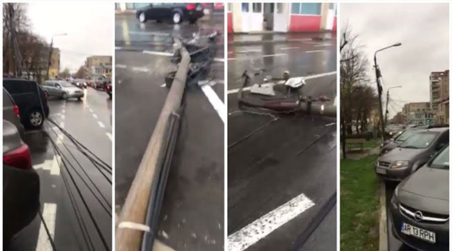 O adevărată tragedie a fost pe punctul de a se petrece în urmă cu câteva momente, după ce un stâlp de beton s-a părbuşit pe şosea.