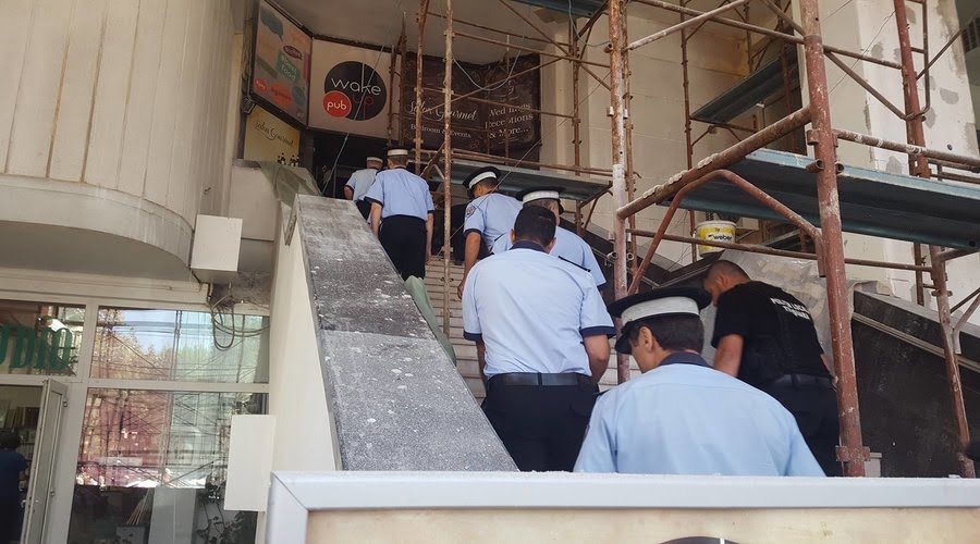 Primarul Timișoarei, Nicolae Robu,este cel care a mobilizat polițiștii locali pentru a întrerupe o lucrare fără autorizație, chiar în inima orașului. Este vorba despre amenajarea unei terase, care urma să apară pe acoperișul de la Modex. Construcția nu avea avizul Primăriei Timișoara, deși muncitorii lucrau de zor pe acoperișul clădirii.
