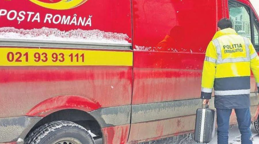 O maşină de transport valori a Poştei a fost jefuită, iar hoţii au furat mai mulţi saci cu bani, prejudiciul fiind de aproape 100.000 de euro.