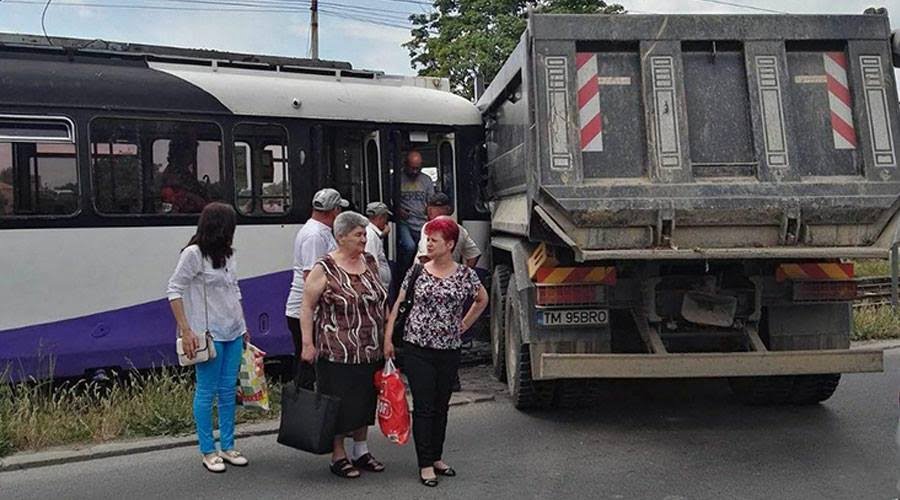 Momente de panică pentru mai mulți călători! O camionetă a intrat într-un tramvai