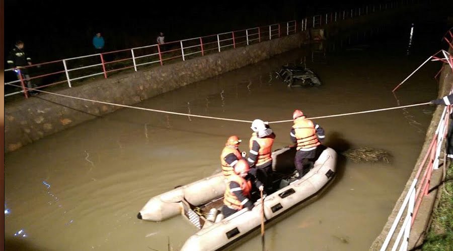 Şoferul care a plonjat cu maşina în canalul colector a fost transportat la spital.
