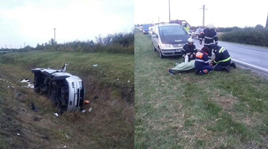 Șase oameni la spital, după ce un microbuz s-a răsturnat pe o șosea din Timiș!