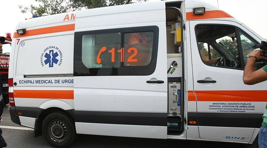 Ambulanță în misiune, lovită de tren, lângă Timișoara! Patru persoane au ajuns la spital