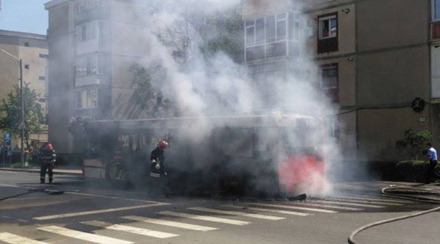 Din primele informaţii, se pare că incendiul a pornit după ce una dintre anvelopele mijlocului de transport în comun a explodat.