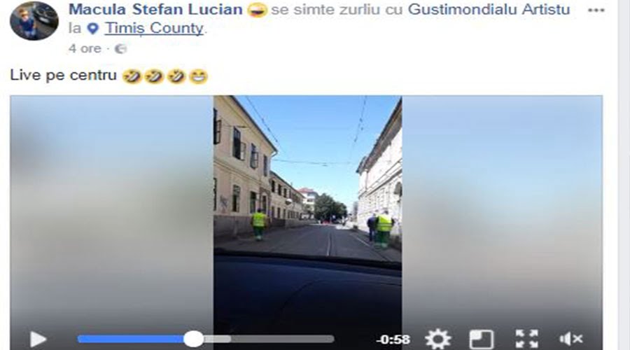 Acesta, împreună cu un prieten, s-au filmat în centrul Timișoarei, în zona pietonală, în timp ce se plimbau cu mașina.