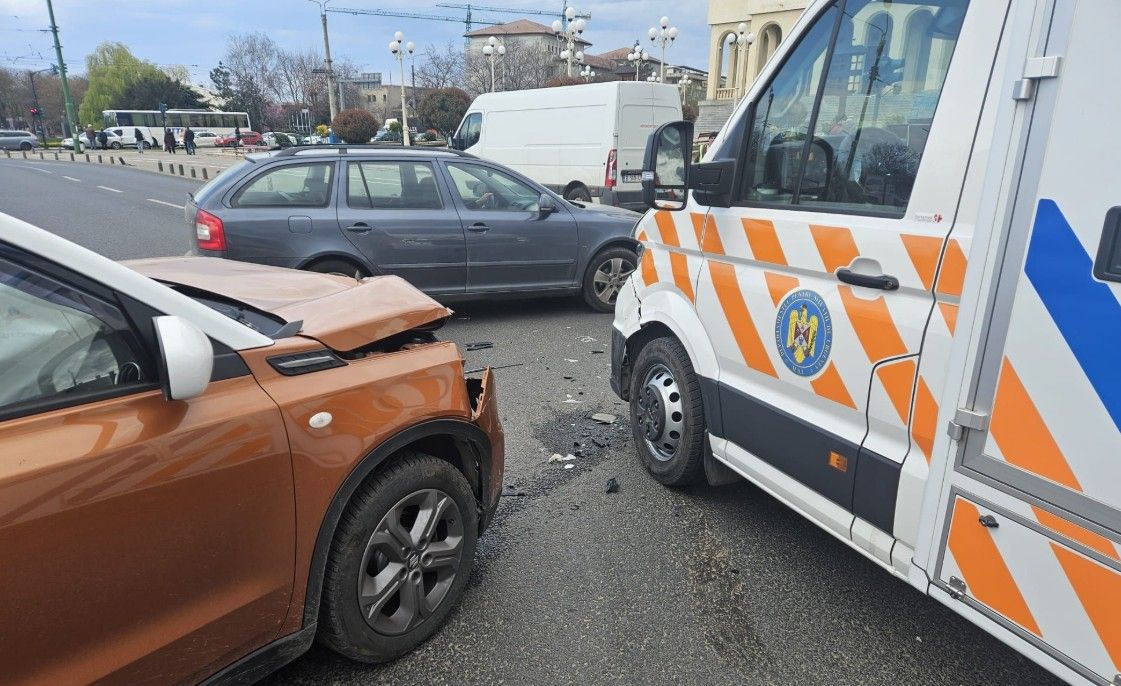 Ambulanță implicată într-un accident rutier! Doi pacienți, un adult și un minor, răniți și transportați cu o altă ambulanță la spital!