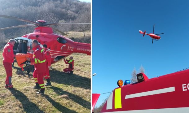 Intervenție contracronometru a pompierilor pentru salvarea unui bărbat prins sub un tractor! A fost solicitat și elicopterul SMURD
