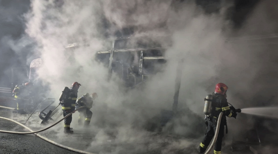 Aparate de fitness făcute scrum! Un tir încărcat cu echipamente sportive a luat foc pe autostradă, în apropiere de Timișoara