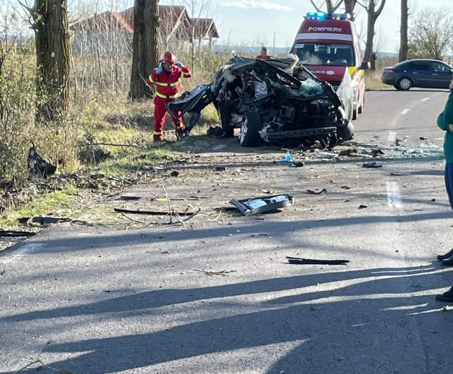 Accident cu doi morți, pe o șosea din Timiș! Șoferul, un tânăr de 20 ani, a intrat cu mașina într-un copac! Pasagerii au murit pe loc