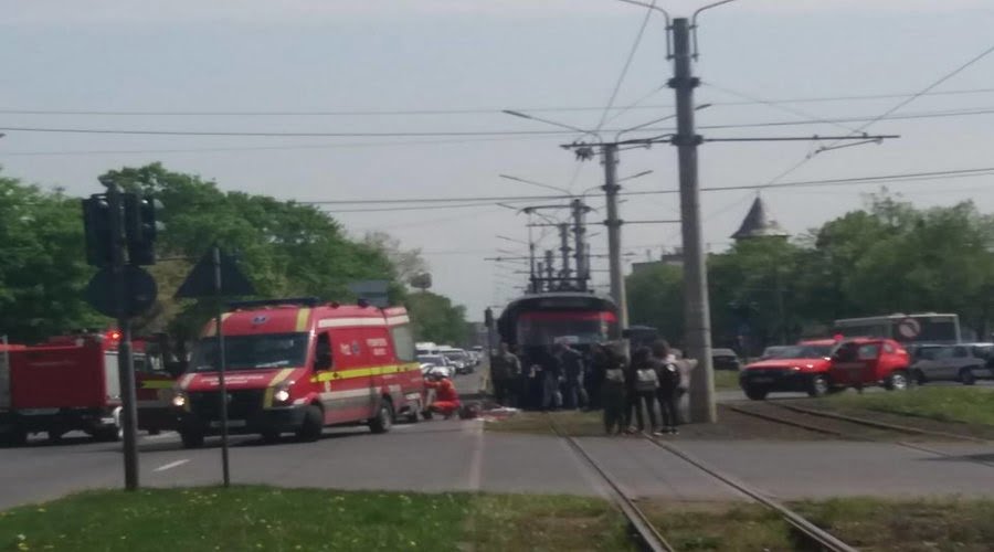 Se pare că șoferița a virat la stânga peste liniile de tramvai, nu s-a asigurat și astfel a fost lovită din plin.