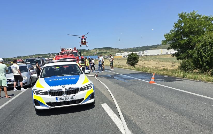 În accidentul rutier au fost implicate un autoturism și un autotren, în care se aflau doar conducătorii. La fața locului a fost chemat și elicopterul SMURD.