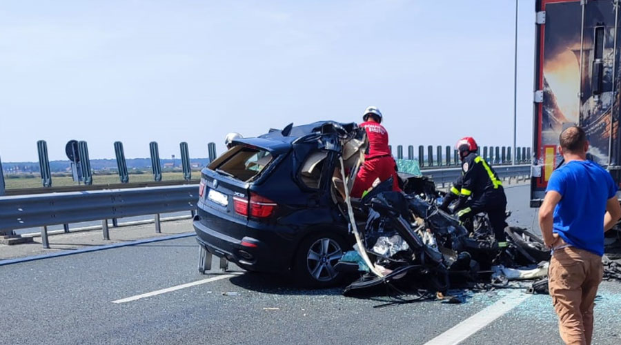 „La data de 26 august, în jurul orei 12:50, un cetățean turc, în vârstă de 52 de ani, care conducea un ansamblu rutier, a efectuat o manevră de mers înapoi, pe autostrada A11, în zona nodului rutier dintre A1 cu A11. În timpul efectuării manevrei, un autoturism condus de un bărbat de 33 de ani, din județul Caraș-Severin, a intrat în coliziune cu ansamblul rutier”, transmite IPJ Arad.