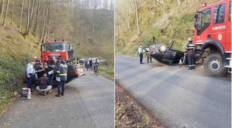 Accident grav pe o șosea din Banat! O mașină a ajuns cu roțile în sus