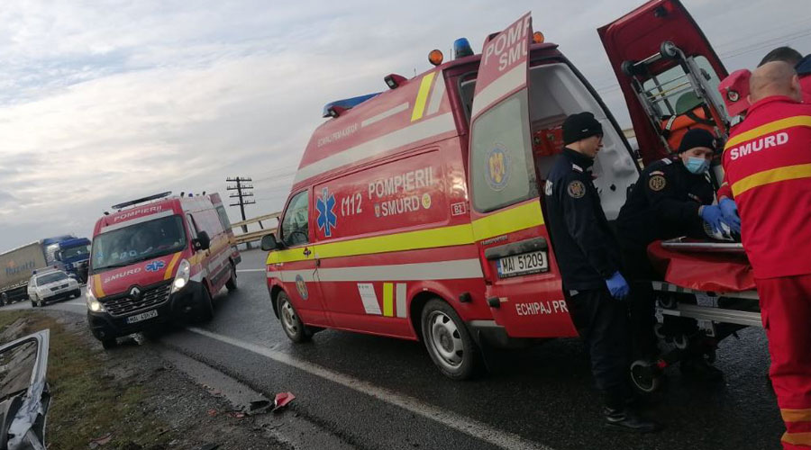 În urma accidentului a fost rănită o singură persoană, care a fost preluată de o ambulanţă şi transportată la spital.