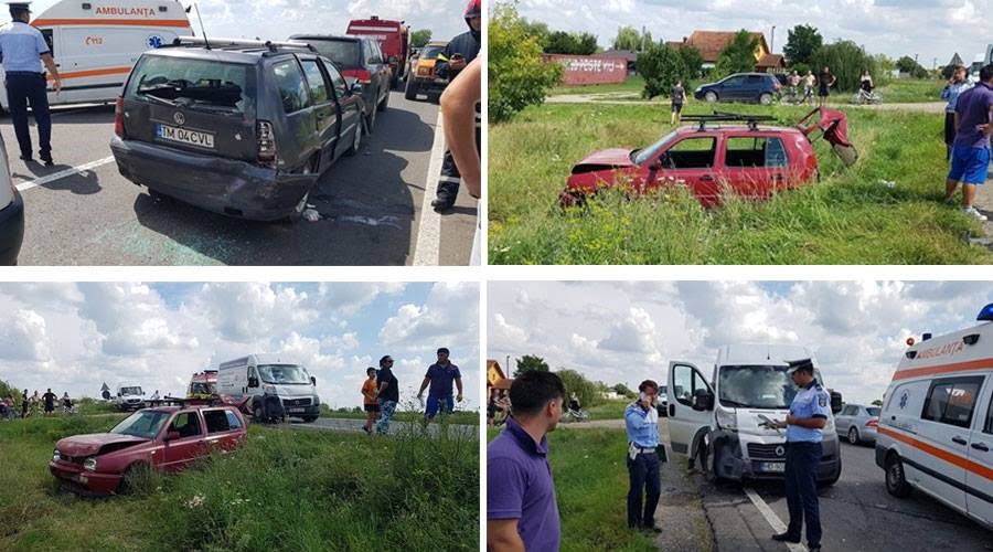 Accident în lanț, lângă Timișoara! Au fost implicate nouă persoane