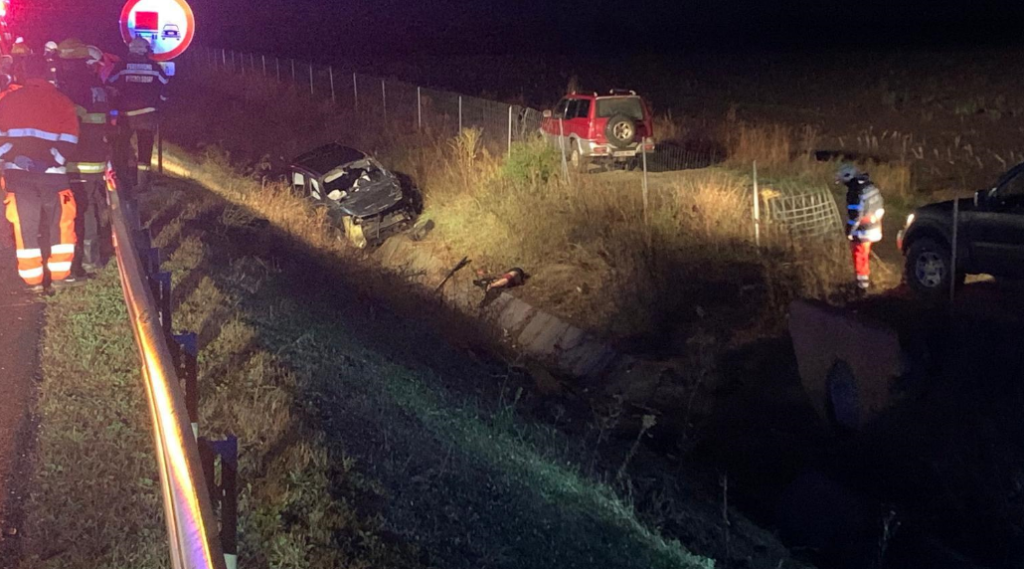 Impactul a fost atât de puternic, încât autoturismul a fost proiectat pe câmpul de pe marginea autostrăzii, unde au ajuns de urgență, mai multe echipaje de medici, pompieri și polițiști.