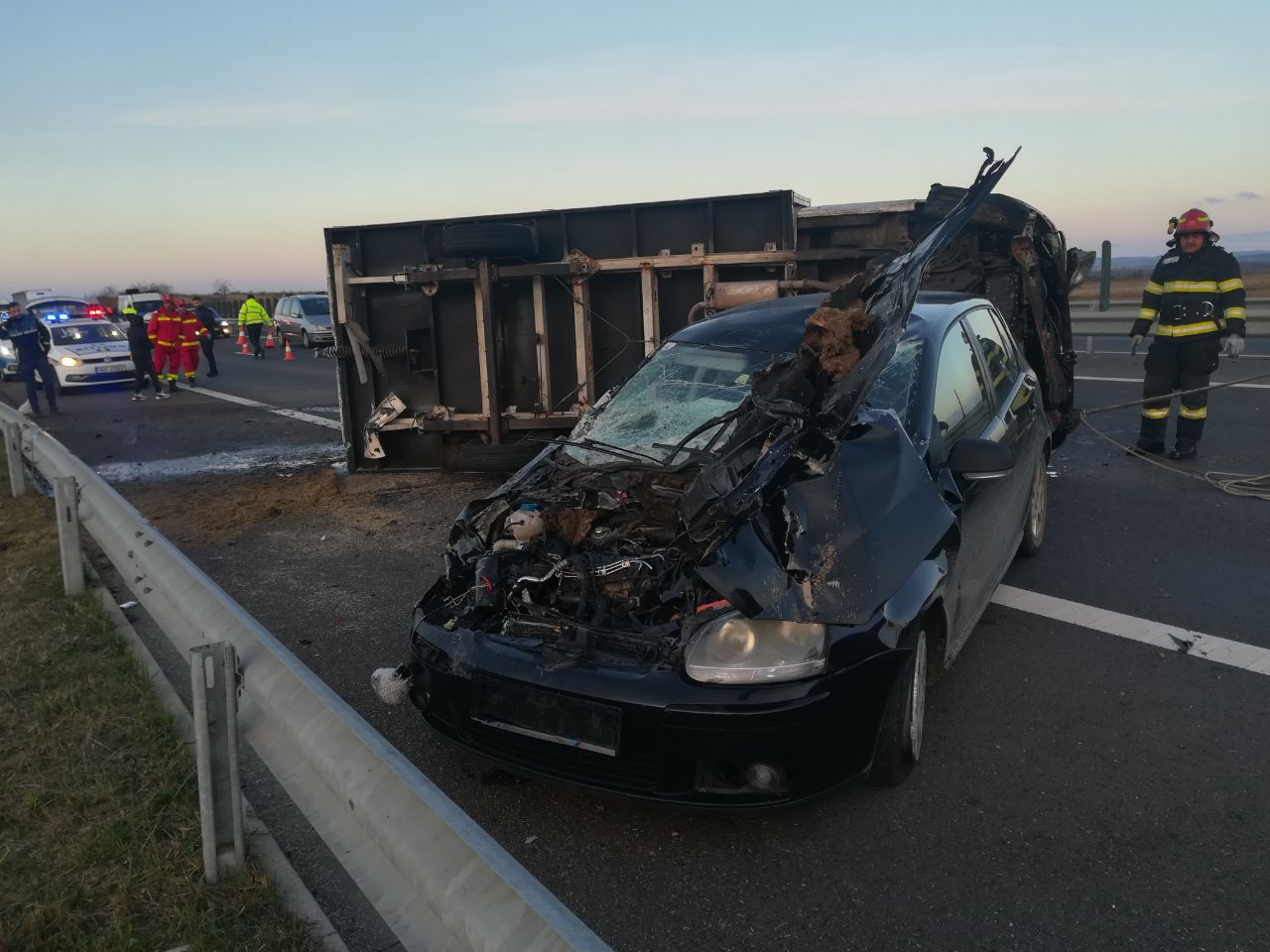 Accidentul a avut loc în această dimineață pe autostrada A1, în apropiere de Făget.