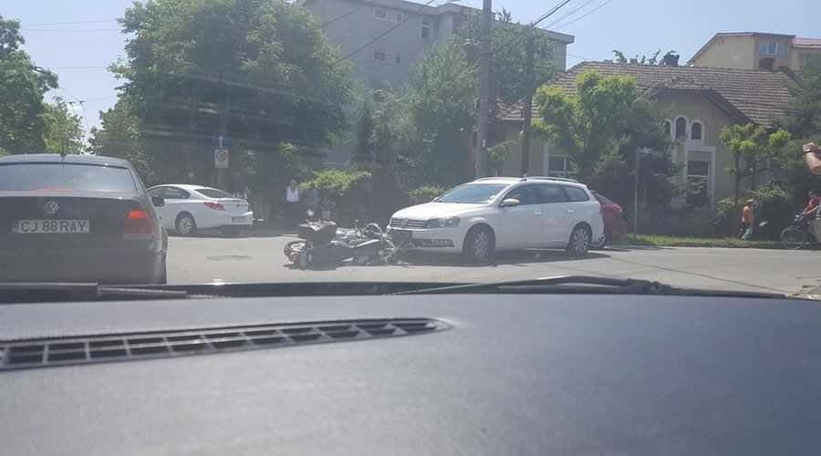 Accident pe Baader! A intrat cu motocicleta sub roțile unei mașini