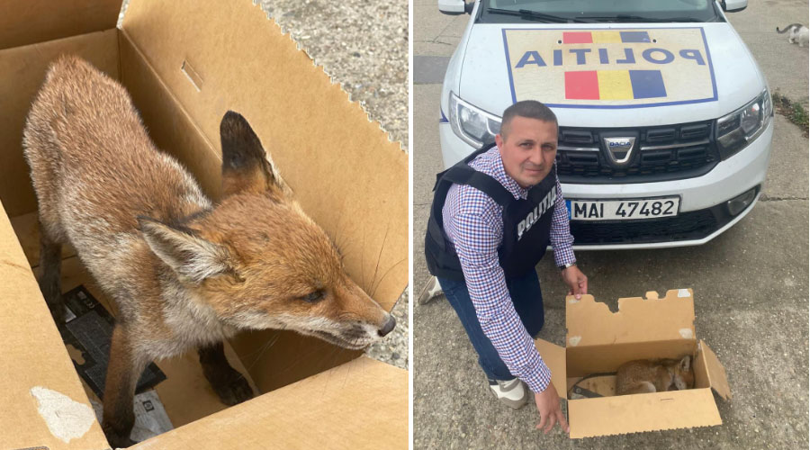 Acțiune de suflet a polițiștilor de la Protecția Animalelor! Au salvat un pui de vulpe de la moarte sigură