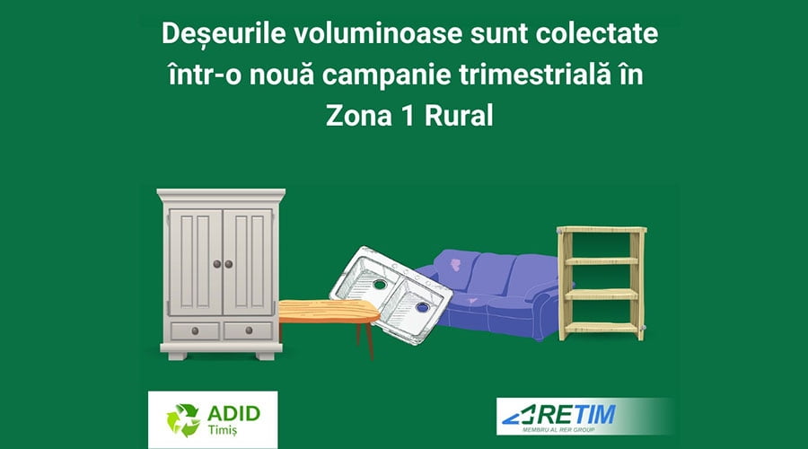 Compania RETIM împreună cu ADID Timiș organizează în perioada 4 mai – 3 iunie o campanie de colectare gratuită a deșeurilor voluminoase din zona 1 rural a judeţului Timiş.