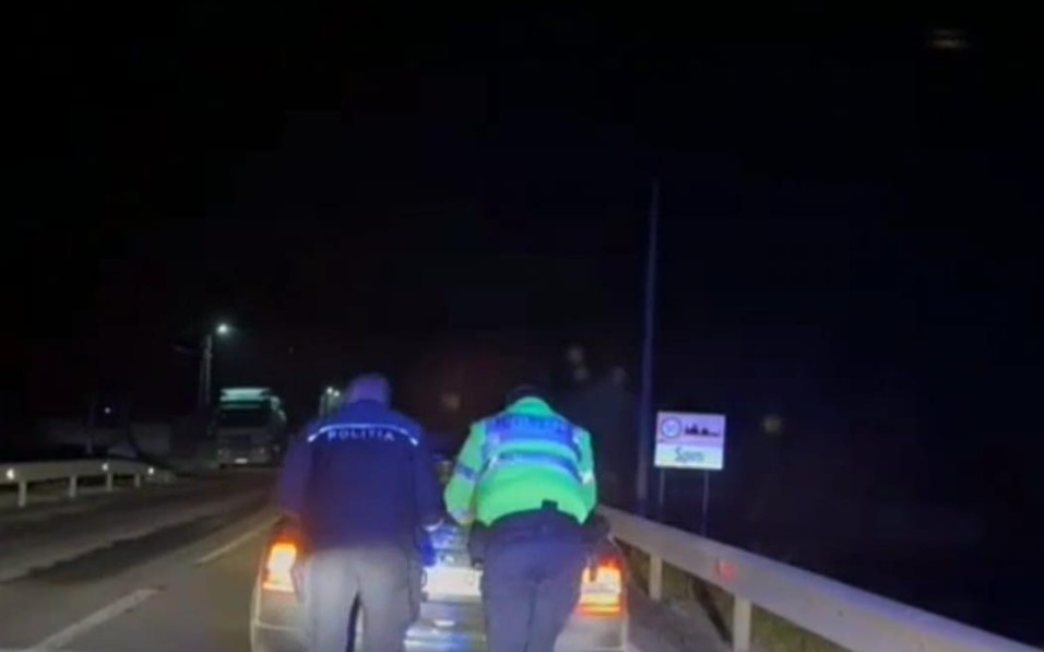Ajutor nesperat, în miez de noapte! Polițiștii au sărit în sprijinul unui tânăr șofer, rămas cu mașina pe marginea drumului după ce s-a defectat!