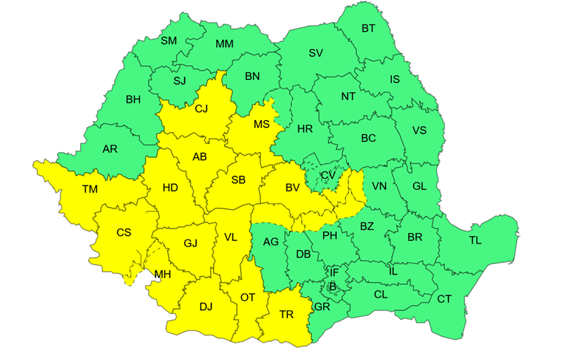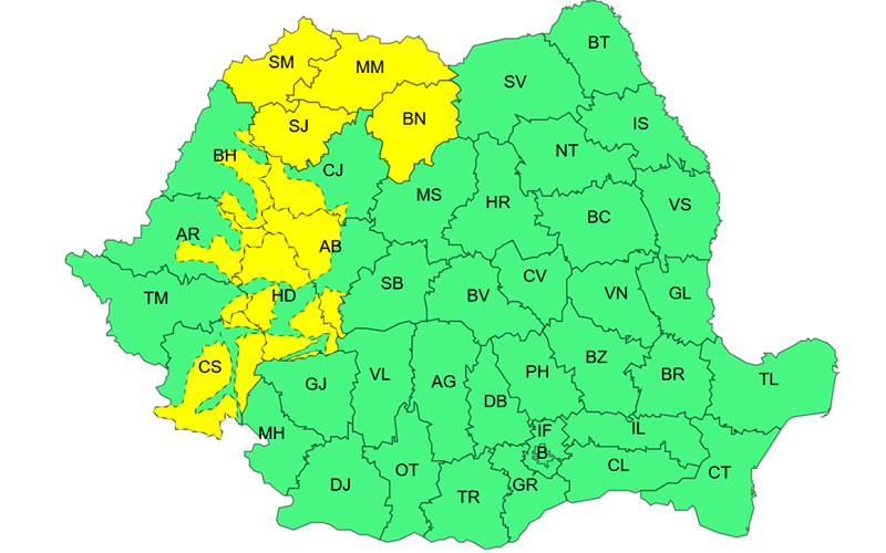 „În zona montană și submontană a județelor Caraș-Severin, Hunedoara, Timiș, Arad, Alba, Bihor, Satu Mare, Sălaj, Maramureș, Cluj și Bistrița-Năsăud, temporar vor fi precipitații însemnate cantitativ și se vor acumula 20…30 l/mp. Vor fi ploi ce vor avea și caracter de aversă, iar la altitudini în general de peste 1400 m, vor predomina ninsorile și se va depune strat de zăpadă de 10…25 cm. În zona montană înaltă a Carpaților Occidentali, precum și în cea din nordul Carpaților Orientali și vestul Carpaților Meridionali vântul va prezenta intensificări cu viteze de 60…90 km/h, astfel va fi viscol, iar vizibilitatea va scădea sub 100 m”, se arată pe site-ul ANM.