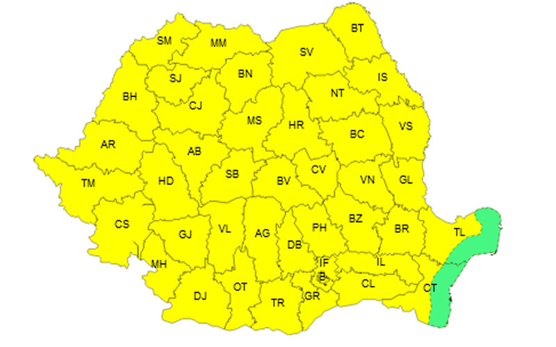 Alerta a intrat în vigoare în această dimineață și va fi valabilă până duminică, la ora 20:00.