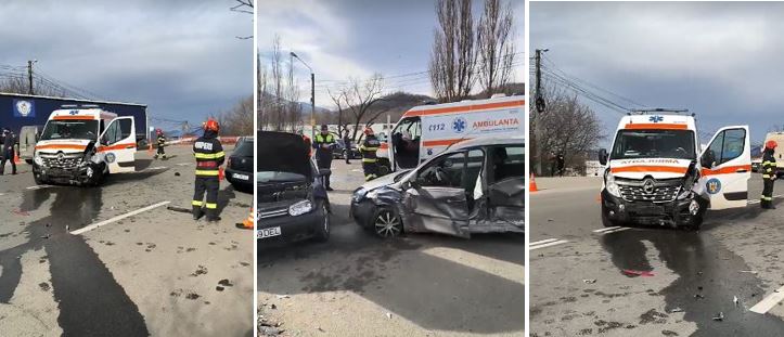 A lovit în plin ambulanța, iar impactul a fost atât de violent, încât aceasta a fost proiectată pe sensul opus de mers, unde s-a izbit de un alt autoturism.