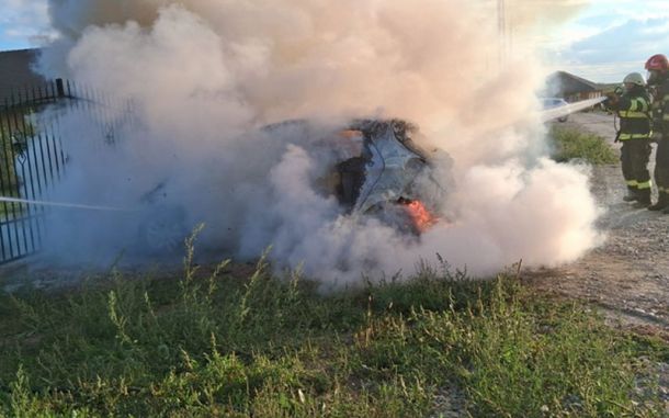 VIDEO: O mașină electrică a fost mistuită de flăcări! Pompierii au intervenit de urgență