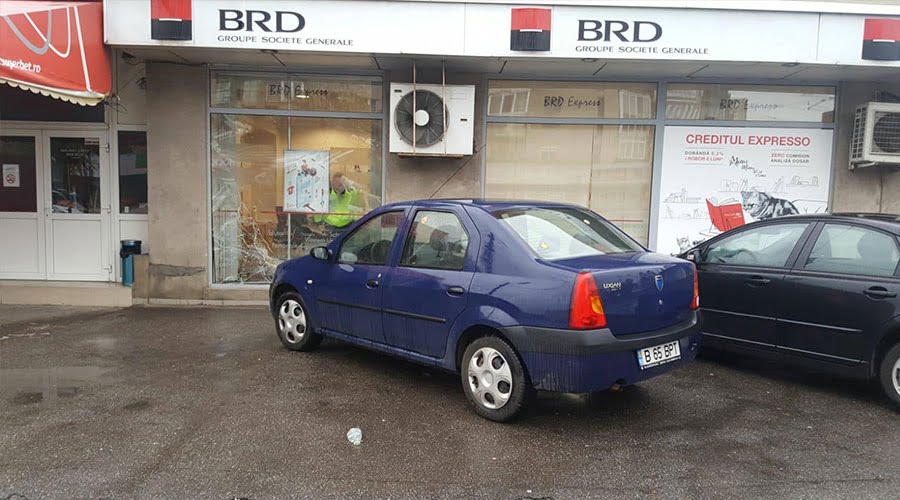 Angajată a BancPost a intrat cu maşina în sediul BRD!