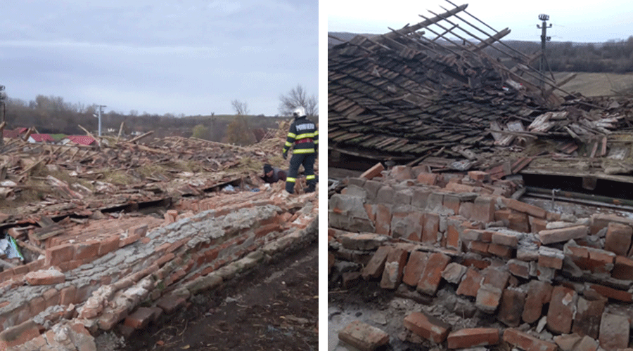 Este și cazul localității Paulian, din județul Bihor, unde rafalele puternice au pus la pământ un grajd în care erau animale.