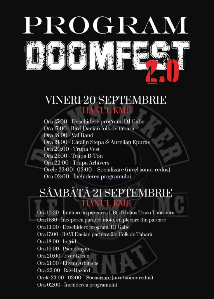 Totodată, în ambele zile, pe scena DoomFest vor urca artiști de renume local, dar și național, iar serile se vor încheia cu concerte de rock, folk și jazz.