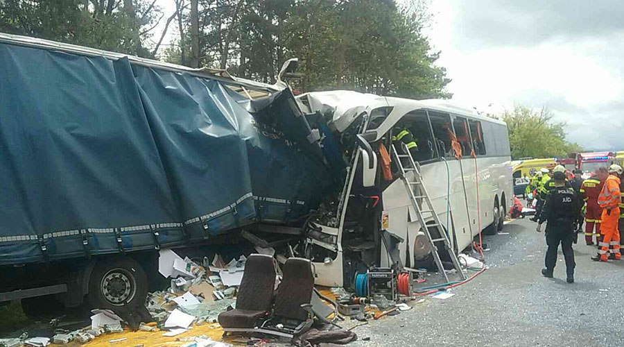 60 de victime, într-un accident înfiorător, în care a fost implicat un şofer român. Impact violent între un tir şi un autocar plin cu turişti