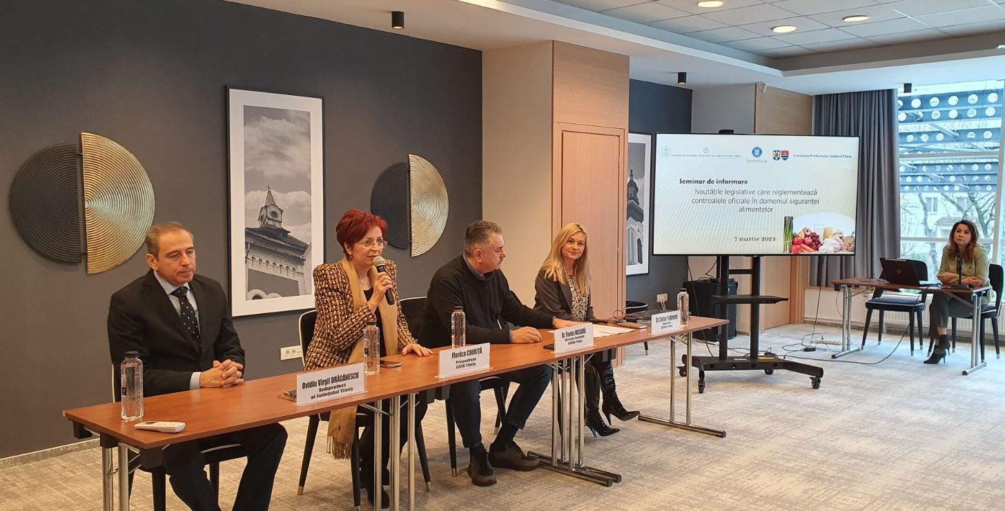 CCIA Timiș, în parteneriat cu DSVSA Timiș și DSP Timiș, sub egida Instituției Prefectului, organizează un seminar de informare privind siguranța alimentelor și igiena produselor, sub genericul: Noutăți legislative, norme și standarde în sănătatea publică și siguranța alimentelor.