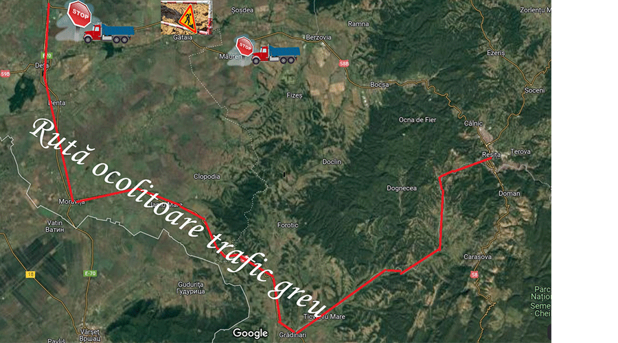 – în perioada 23.09.2024 – 27.09.2024, traficul greu va fi oprit pe DN 58B (Voiteg-Reșița), urmând a fi deviat pe ruta ocolitoare Voiteg (DN59) – Deta – Moravița (DN57) – Jamu Mare – Grădinari (DJ581) – Reșița (DN58);