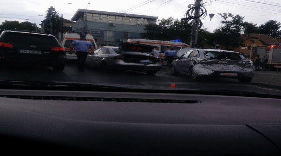 Accident în această după-amiază, la Timișoara! Șoferul unui autobuz a izbit mașina care circula în fața sa, iar acesta a fost proiectată într-o alta.