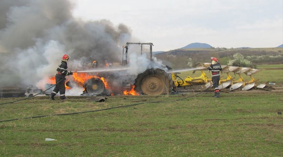 Un tractor a luat foc la ieșire din Timișoara, luni, la prânz.
