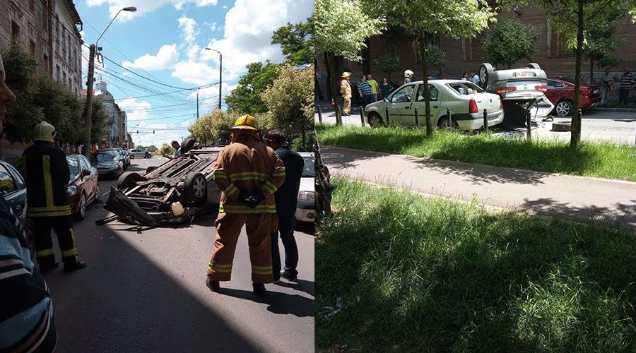 Accident, duminică, la Timișoara! O mașină a ajuns cu roțile în sus.