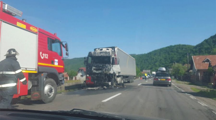 PERICOL de EXPLOZIE! Un TIR a luat foc pe șosea
