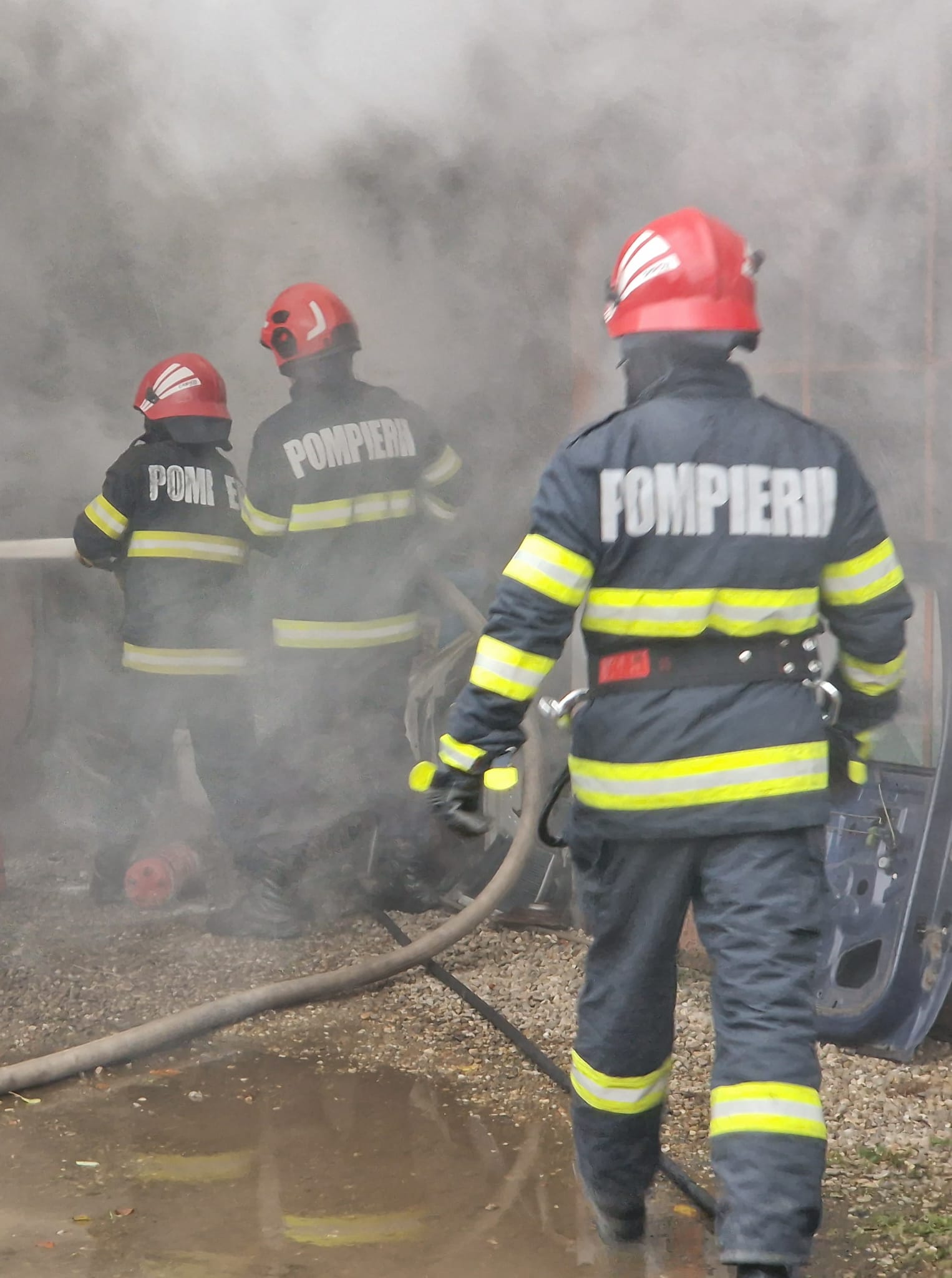 Pompierii intervin de urgență, în aceste momente, să lichideze incendiul violent care a cuprins un autobuz în care erau șoferul și 25 de călători.