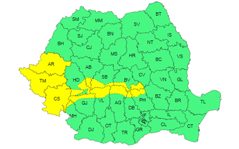 Atenționarea meteorologică a intrat deja în vigoare și este valabilă până în această seară, la ora 21:00.