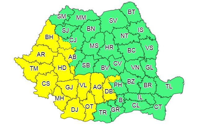 Avertizarea este valabilă până deseară la ora 21.00, pentru mai multe județe, printre care și Timișul.