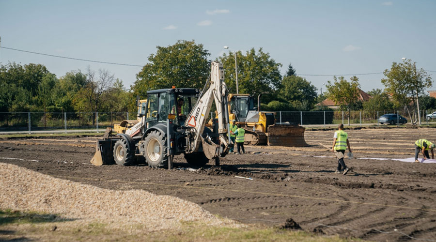 Constructorul a avansat cu amenajarea terenului de fotbal, unde a finalizat drenajul, iar potrivit graficului, până spre sfârșitul anului va fi construită clădirea cu tribună, cu o capacitate de 417 locuri. Așadar, după finalizarea acestor lucrări, echipele Primăriei vor putea continua instalațiile și finisajele interioare și pe perioada iernii.